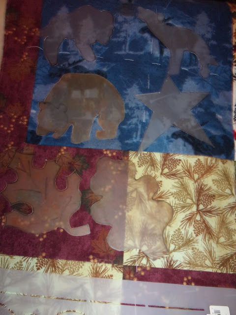 The big Yellowstone quilt back on the frame